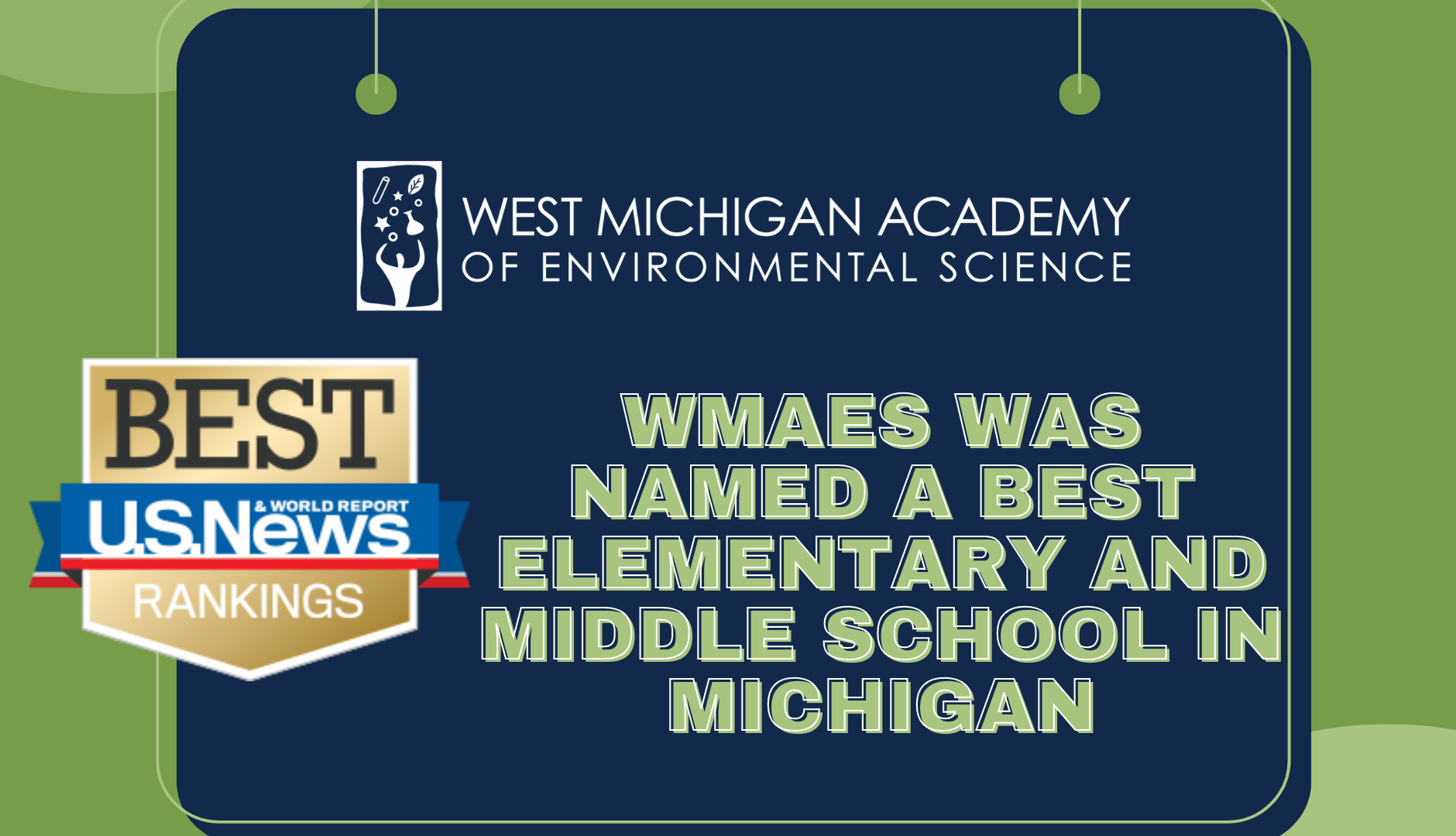 West Michigan Academy of Environmental Science has been named a U.S. News Best Elementary and Middle school in Michigan. The U.S. News & World Report K-12 directory encompasses over 100,000 schools across the country with data designed to make finding the best local schools easy. WMAES is one of 1,100 schools across the country that received both awards and we couldn’t be more proud of our school community!